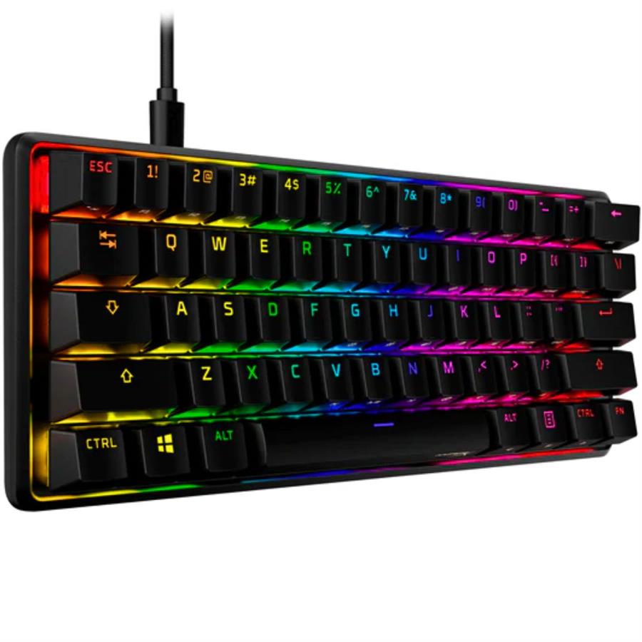 El HyperX Alloy Origins™ 60 es un teclado sumamente portátil con un factor de forma del 60% que te brinda más espacio para los movimientos amplios del mouse. Cuenta con un cuerpo de aluminio duradero y conmutadores HyperX confiables y equilibrados para velocidad y rendimiento que están clasificados para soportar 80 millones de pulsaciones de teclas. Las teclas PBT de doble disparo tienen funciones secundarias impresas para que pueda localizar rápidamente funciones adicionales. Deje que su estilo brille con el diseño LED expuesto de los interruptores HyperX y los impresionantes efectos de iluminación. Personaliza aún más tu teclado con macros, perfiles de iluminación personalizados y más con el software HyperX NGENUITY.