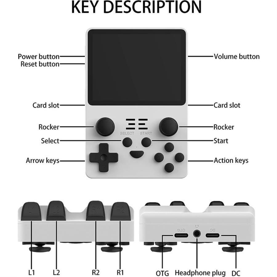 Contenido del paquete: 1 consola de juegos. 1 cable de carga. Manual de usuario.