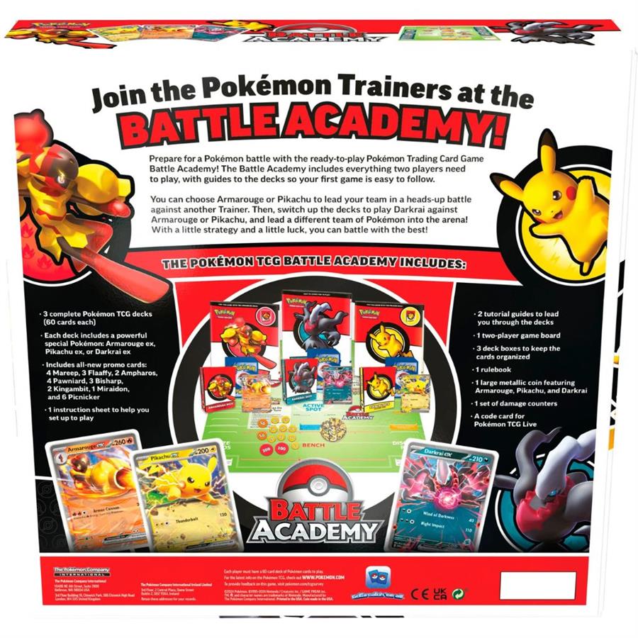 ¡Únete a los entrenadores Pokémon en la Academia de Batalla! Prepárate para una batalla de Pokémon con la Academia de Batalla de Juego de Cartas Coleccionables Pokémon lista para jugar. La Academia de Batalla incluye todo lo que dos jugadores necesitan para jugar, con guías para que tu primer juego sea fácil de seguir. Puedes elegir Armarouge o Pikachu para liderar a tu equipo en una batalla de mano a mano contra otro Entrenador. Luego, cambia los mazos para jugar Darkrai contra Armarouge o Pikachu, y lidera a un equipo diferente de Pokémon a la arena. Con un poco de estrategia y un poco de suerte, puedes luchar con los mejores.