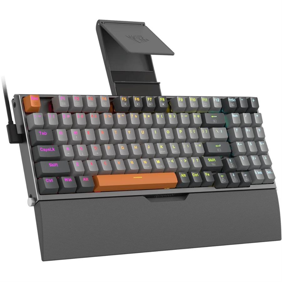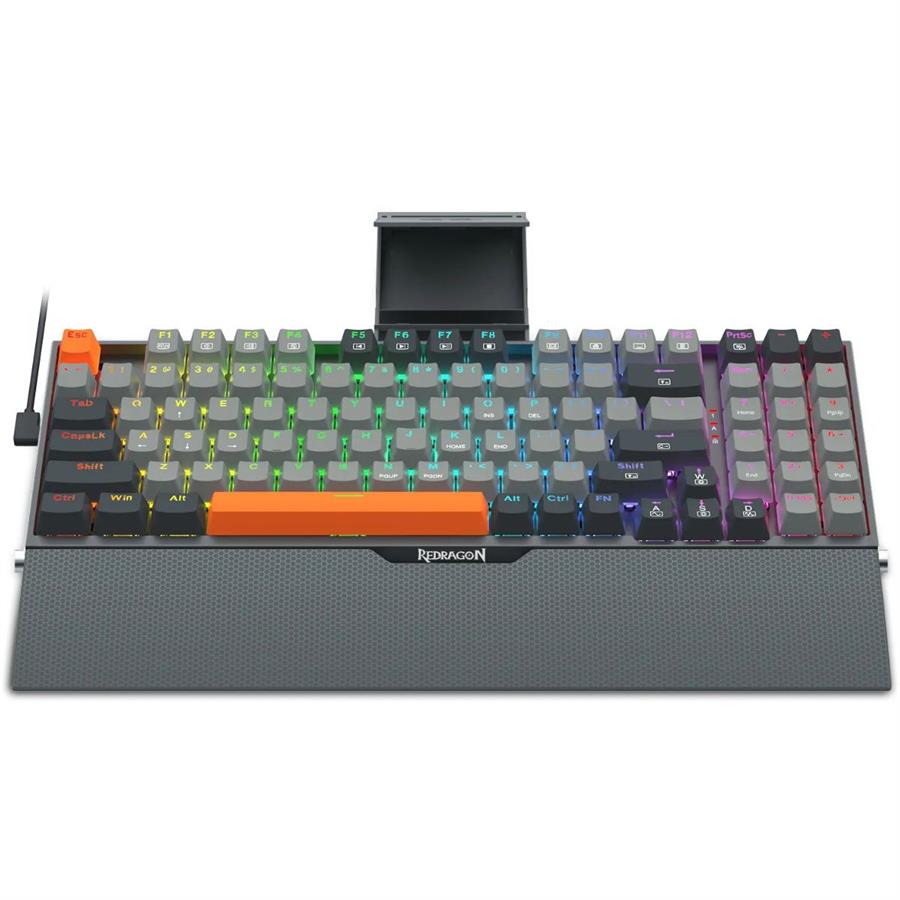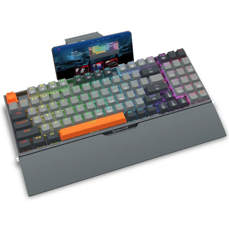 - Con estructura completa de aluminio, incluye además reposamuñecas extraíble y soporte para teléfono, junto con la clásica iluminación RGB de excelencia Redragon.