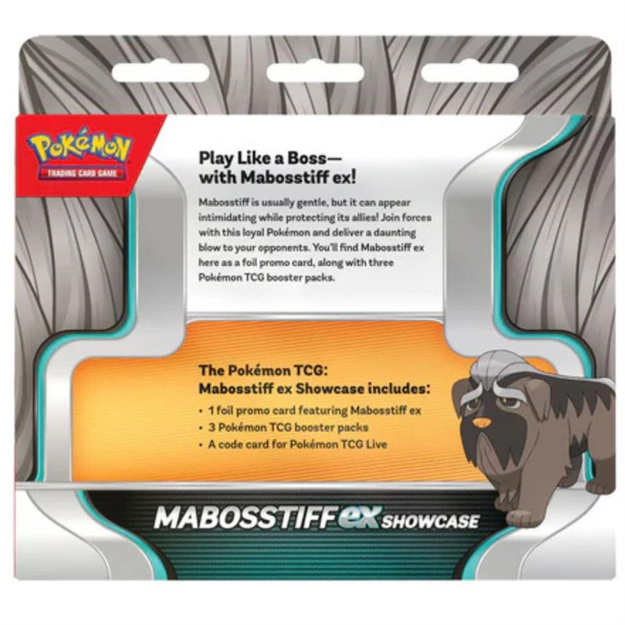 Mabosstiff suele ser dócil, ¡pero puede parecer intimidante mientras protege a sus aliados! Une fuerzas con este leal Pokémon y asesta un golpe contundente a tus rivales. Encontrarás a Mabosstiff ex aquí como carta promocional foil en versiones jugables y de gran tamaño, junto con el Pokémon travieso Maschiff.